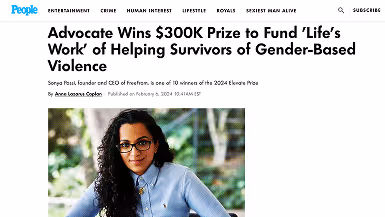 PEOPLE Magazine wrote a feature on Elevate Prize winner Sonya Passi and her work helping survivors of gender-based violence.